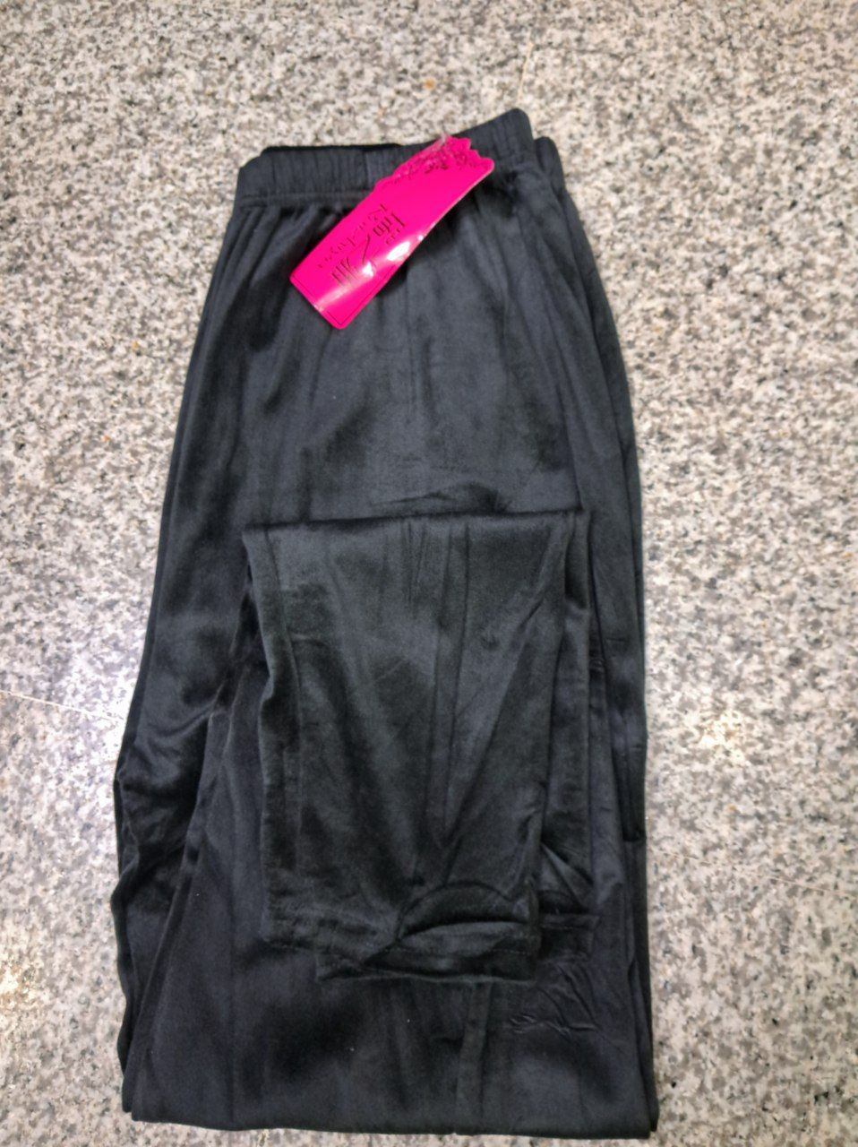 شلوار مخمل تک مشکی دمپا راسته با قواره بزرگ و کشسانی بالا مناسب تا سایز ۵۲ و ۵۴.رنگ کار مشکی پرکلاغی هست و بور نمیباشد.